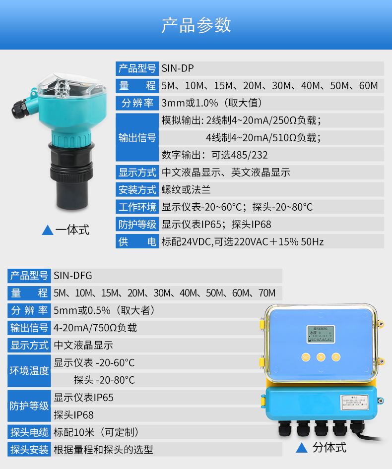 您的位置:首頁 > 超聲波液位計 → 聯測_SIN-DFG_基礎款_分體式超聲波液位計/物位計/水位儀 污水 料位液位測量_